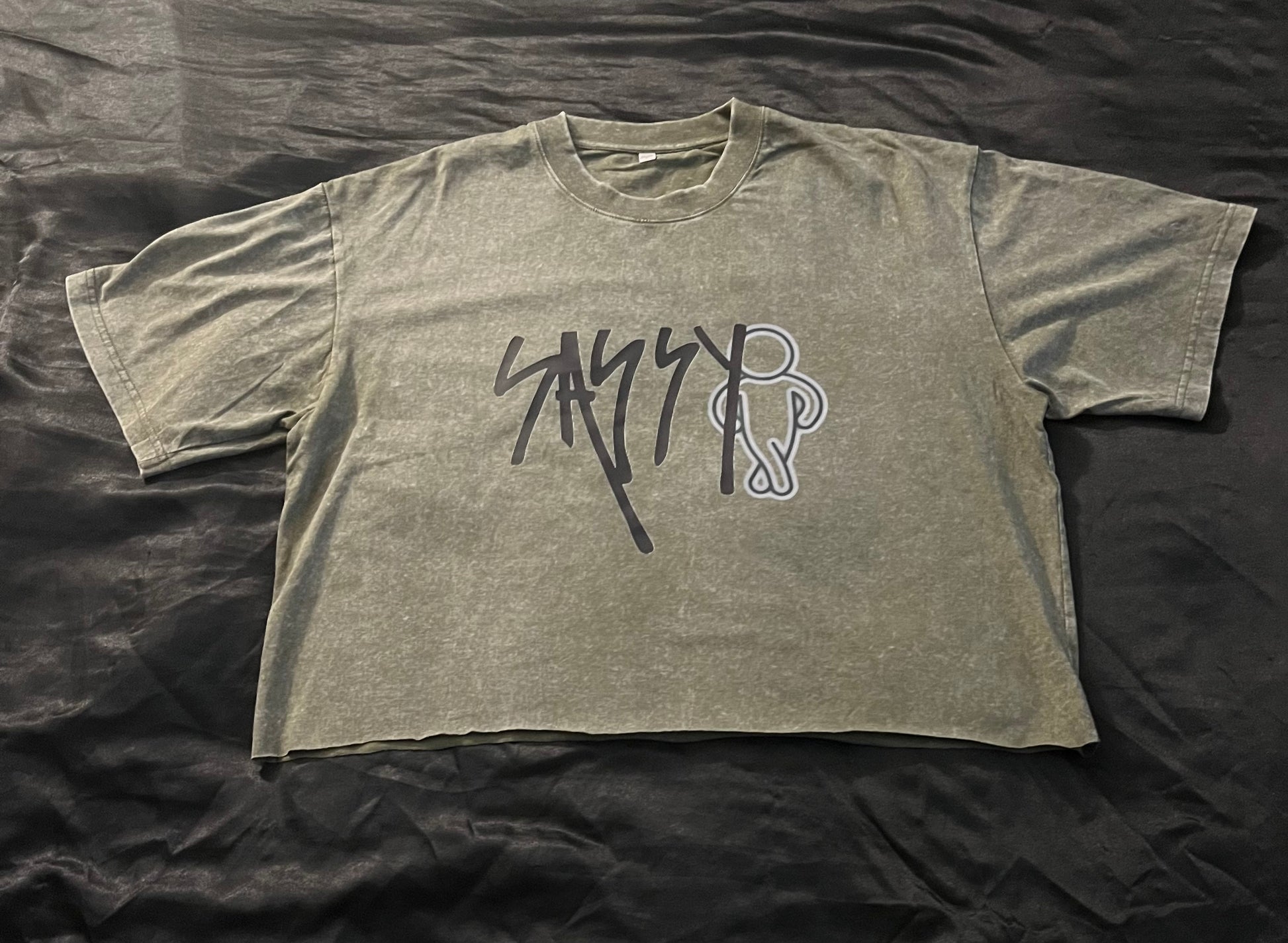 Olive Green Cropped T-shirt w/Logo